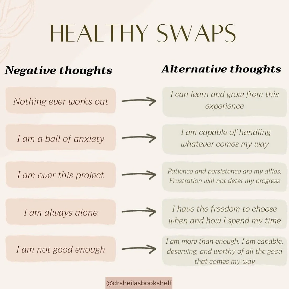 View fullsize Take a moment and find the thought that has been taking space in your head - and see if you can find an alternative way of speaking to yourself. How does that feel for you?